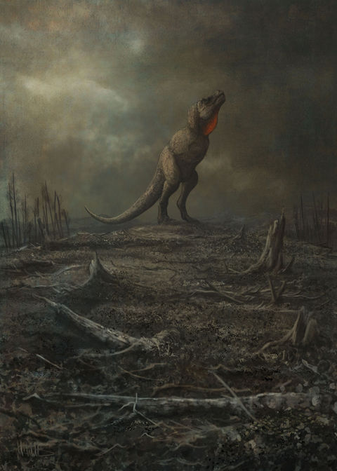 One of the worst days in the history of life as seen from North America, explored in art. It's difficult to convey the scale and awfulness of this event, but it's a fascinating subject to explore artistically, even if I think mere paintings struggle to convey how terrifying it must have been. This sequence of paintings was published in my book King Tyrant: A Natural History of Tyrannosaurus rex (2025).